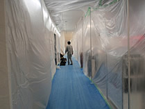 当社では、内装解体工事における養生作業を重要な工程の一つと捉え、丁寧かつ確実な施工を行っております。養生は、建物の共用部や施工対象外の設備・床・壁などを保護する作業であり、工事による損傷や汚れ、騒音・振動の影響を最小限に抑えるために欠かせません。当社は、養生材の選定から設置方法まで、現場の状況に応じた最適なプランを提案し、きめ細やかな対応を徹底しています。エレベーター・通路・エントランスなど、建物の利用者や管理者への配慮も欠かさず、施工前の説明や完了後の確認も丁寧に行っております。また、解体工事・揚重作業・運送・産業廃棄物処理といった関連業務も自社で一括対応しているため、工程の整合性とコスト面においても高い評価をいただいております。